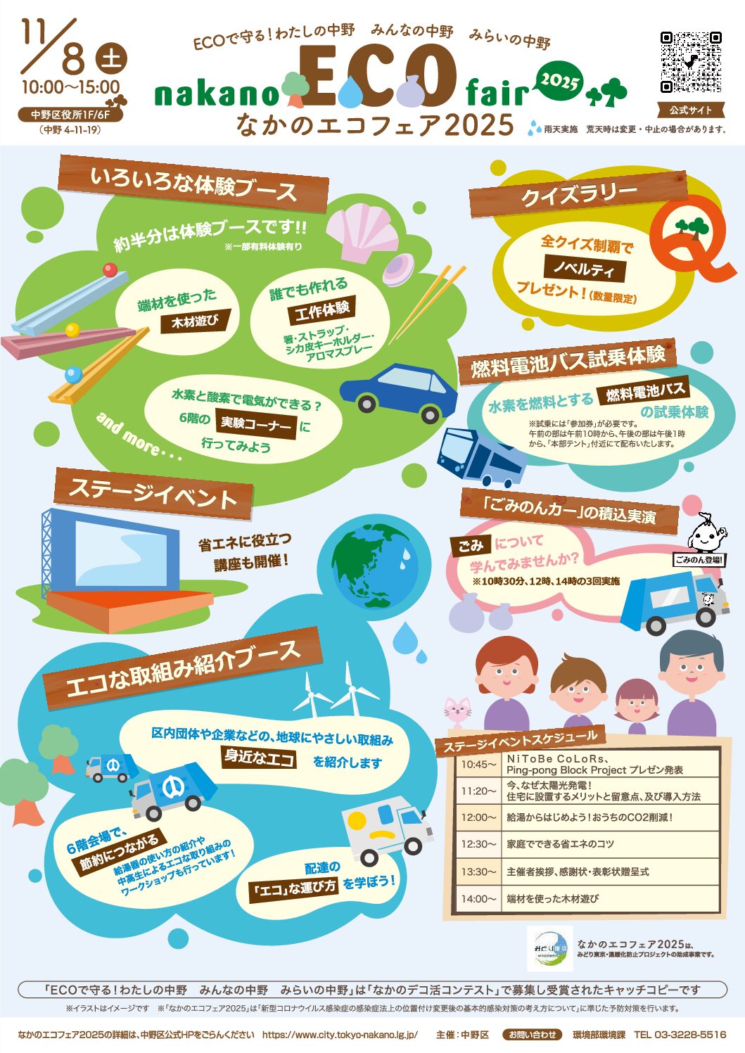 持続可能なまち「なかの」を次世代を引き継いでいくため、区民団体や企業・学校・公共団体等が一丸となり、皆さまが楽しく取り組める身近で「地球にやさしいエコライフ」を提案します。 お友達やご家族をお誘いあわせのうえ、ぜひ、ご来場ください!