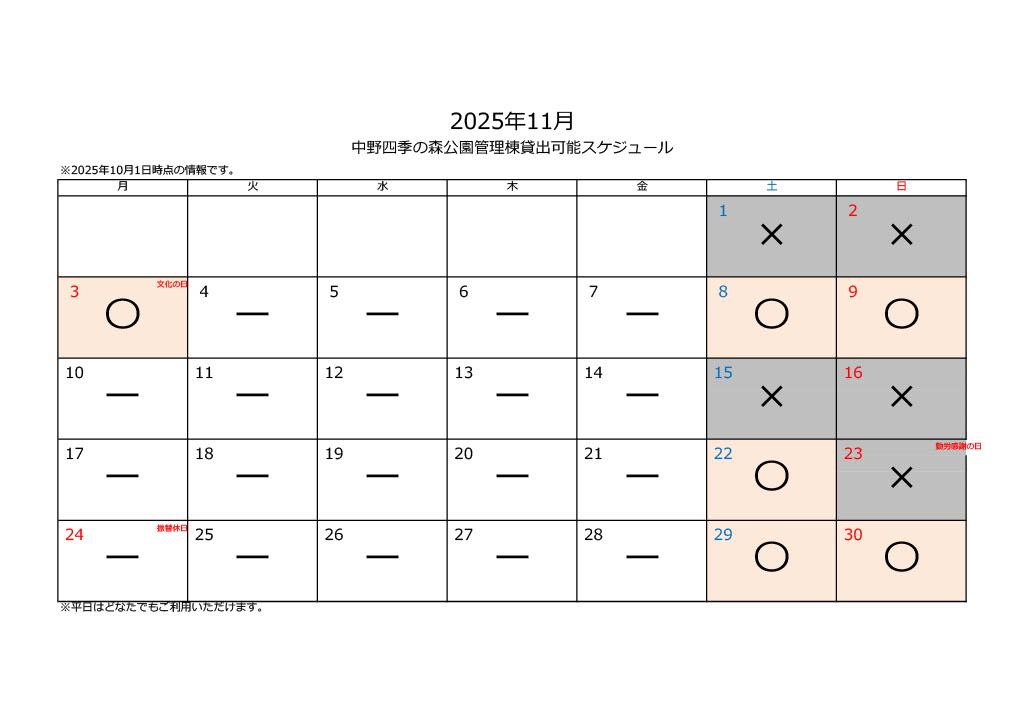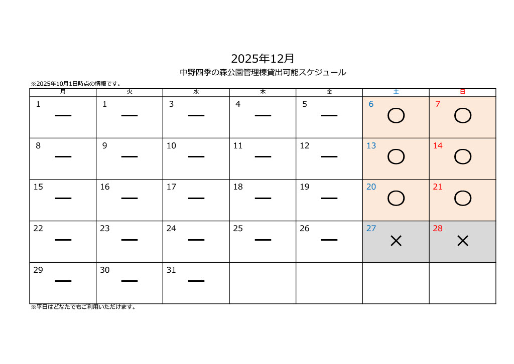 - 管理棟内 多目的スペース 占用可能日カレンダー(11月・12月)