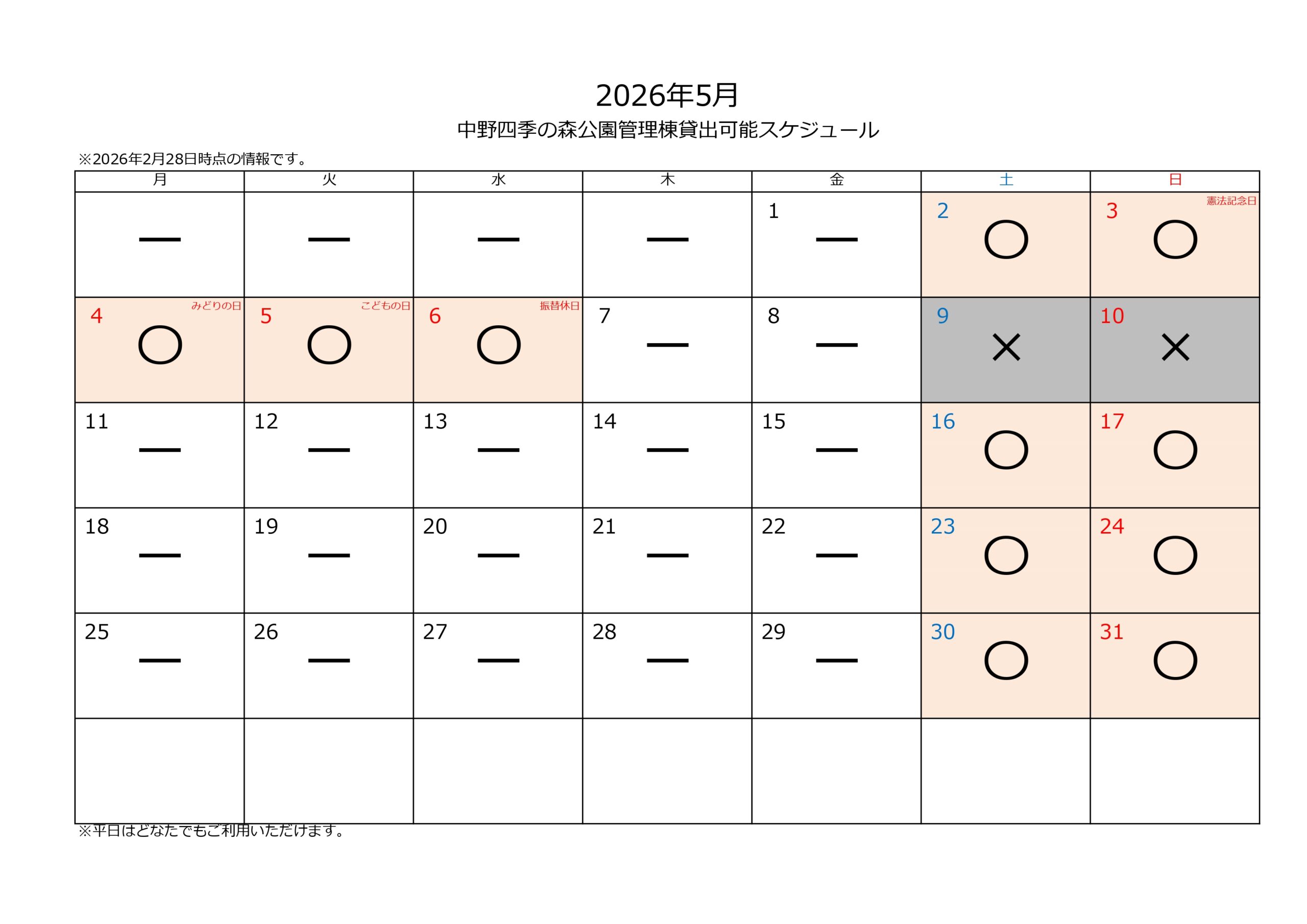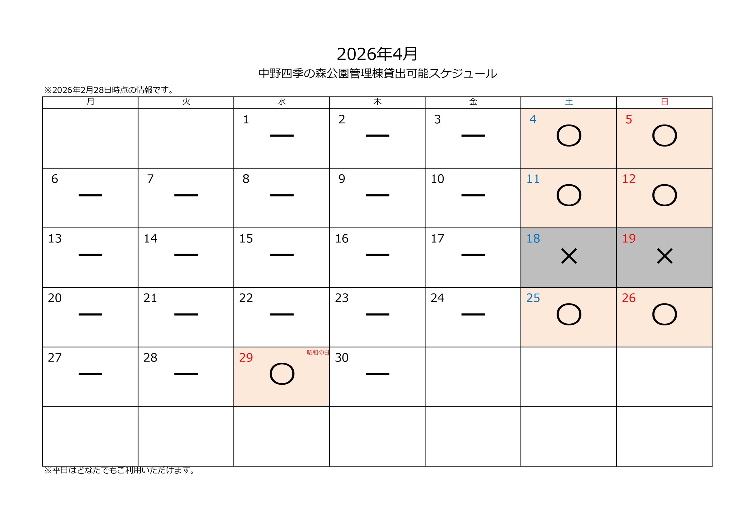 (※平日は一般開放しますので占用利用はできません。)